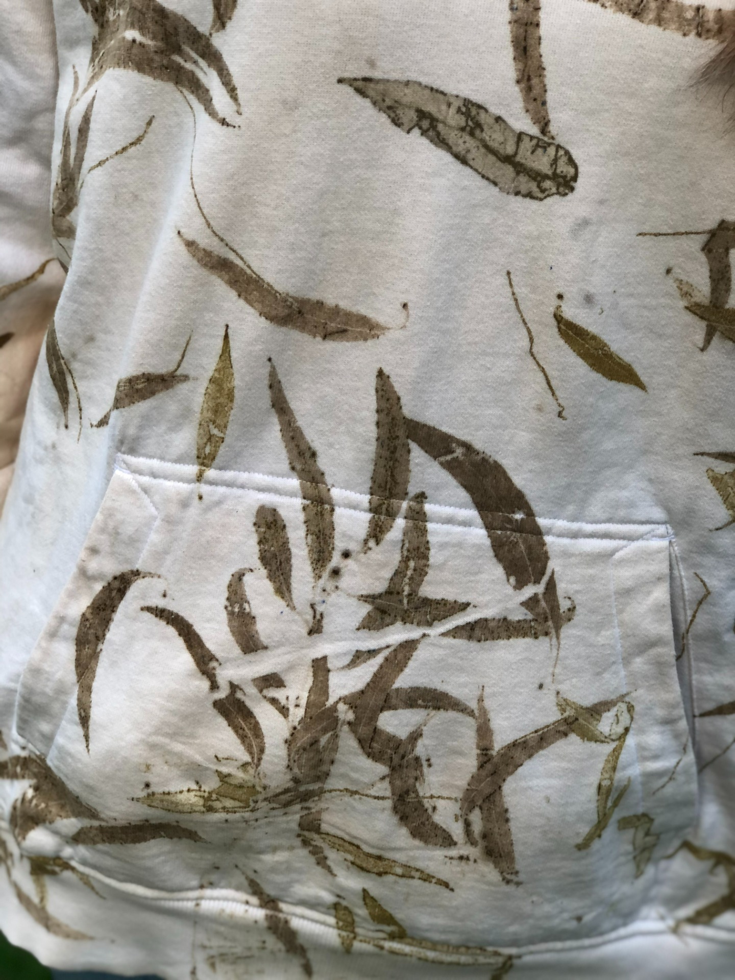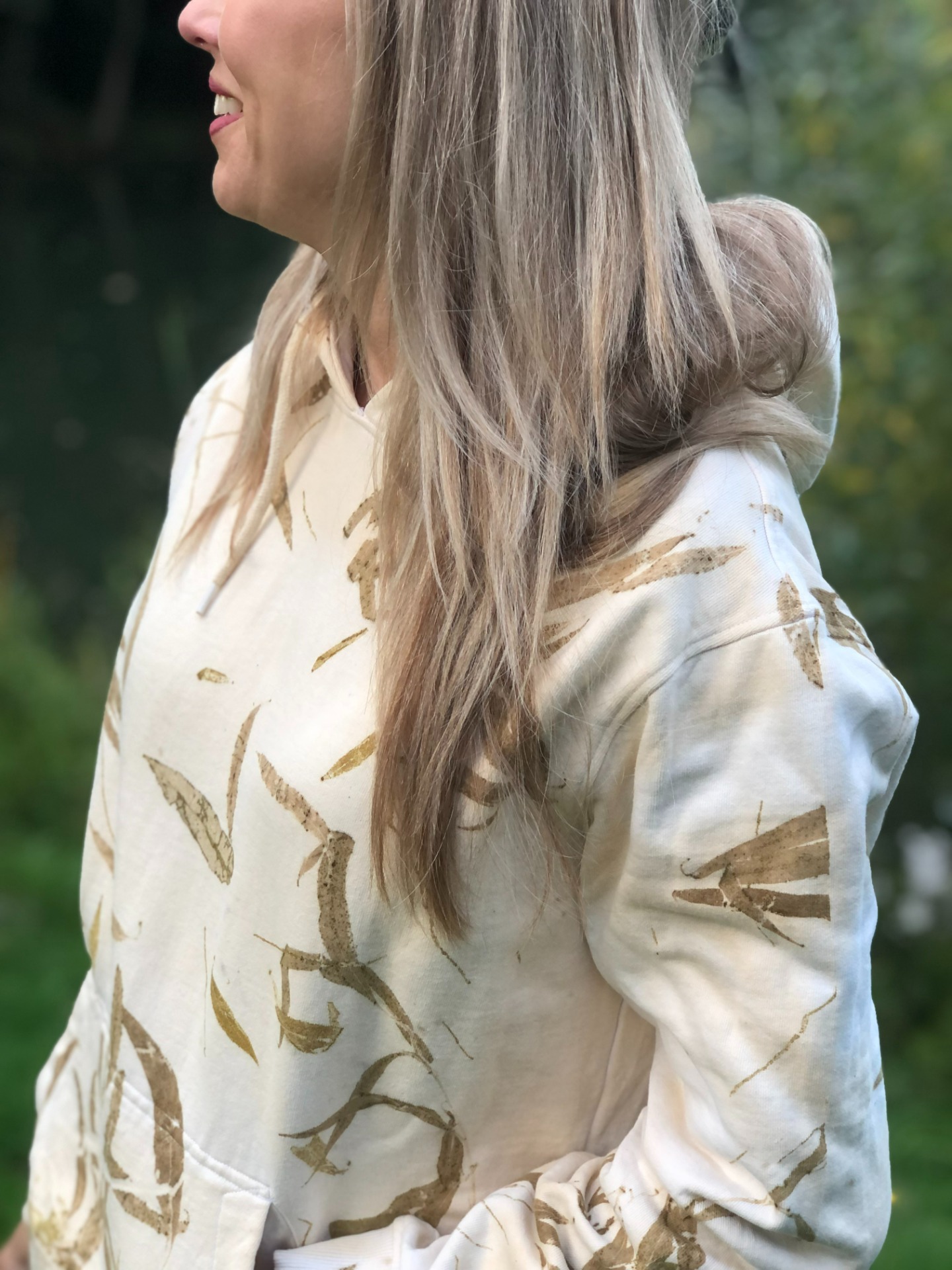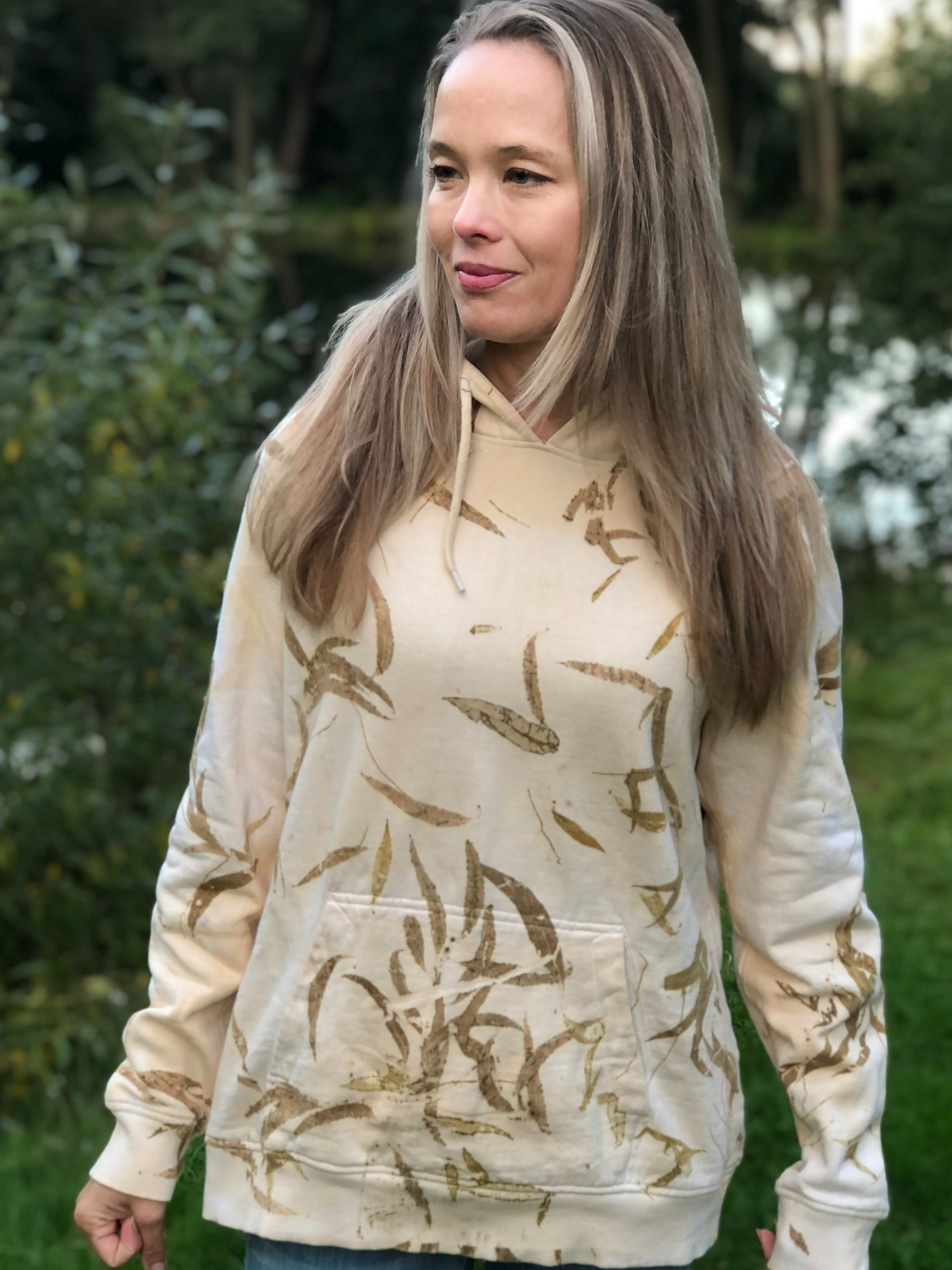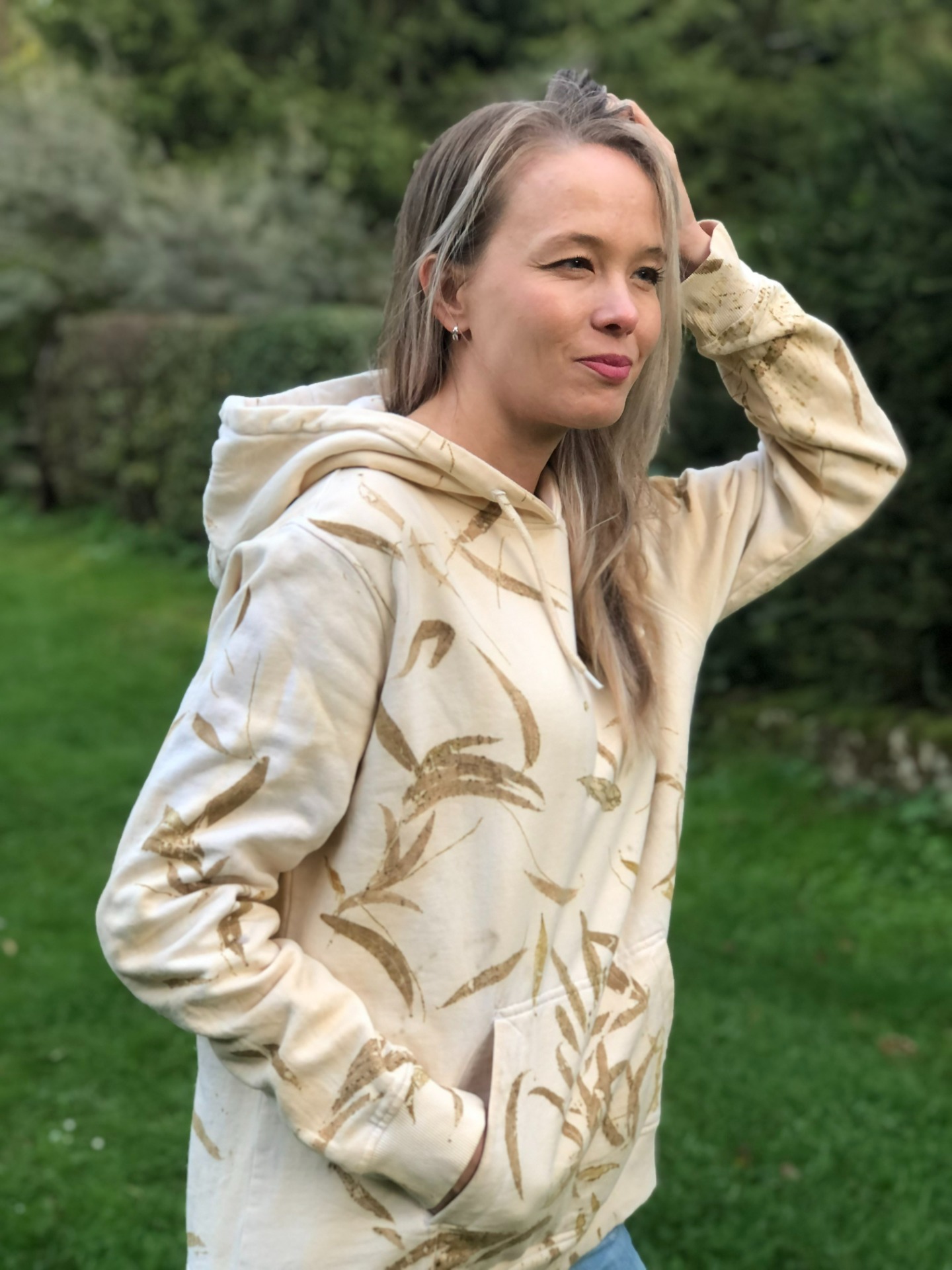 Mikinu sama nešiji, ale pečlivě vybírám kvalitní kousky, které splňují vysoké standardy. Poté je ručně potisknu technikou ecoprint, aby každý kus byl originál.