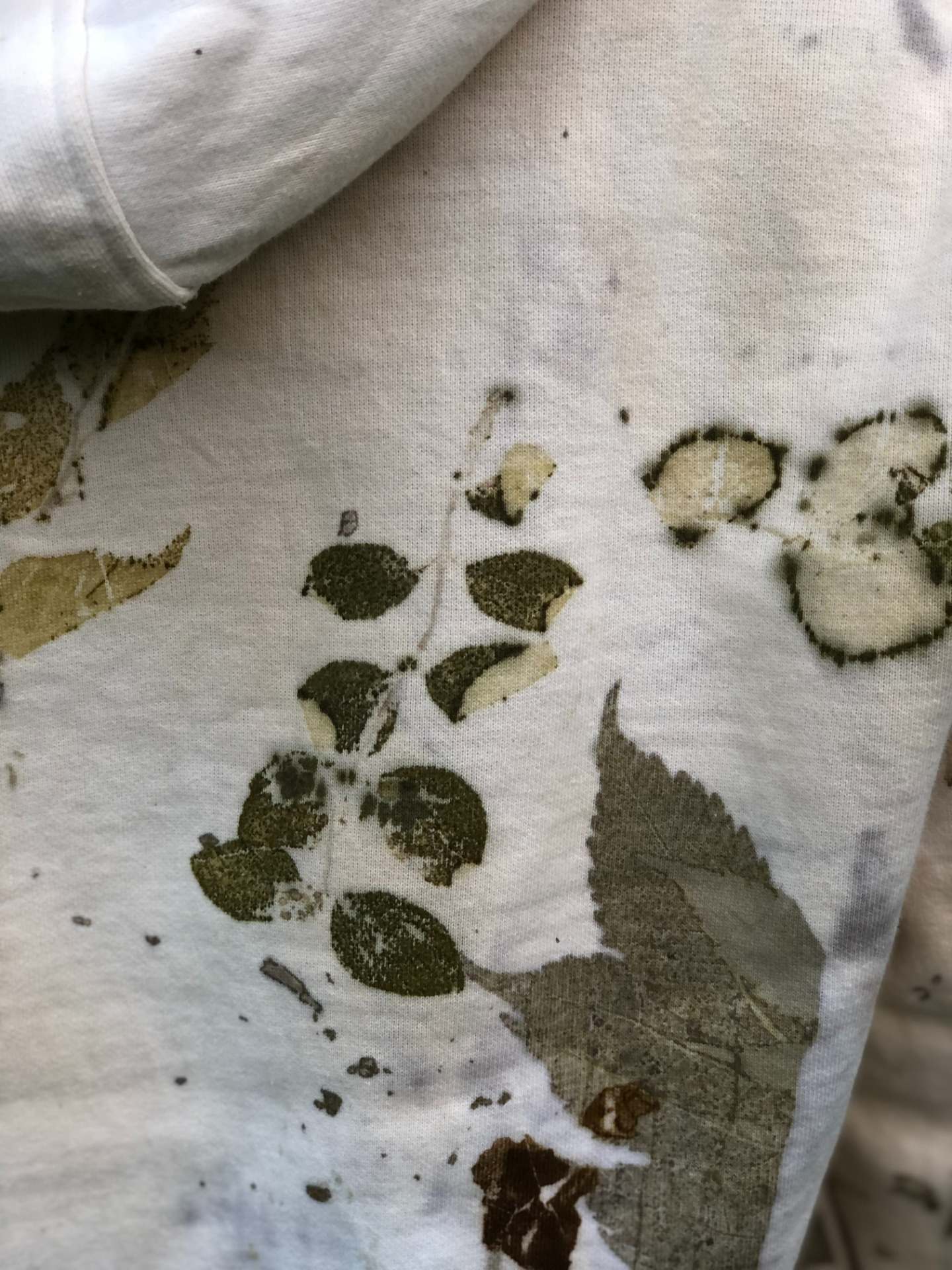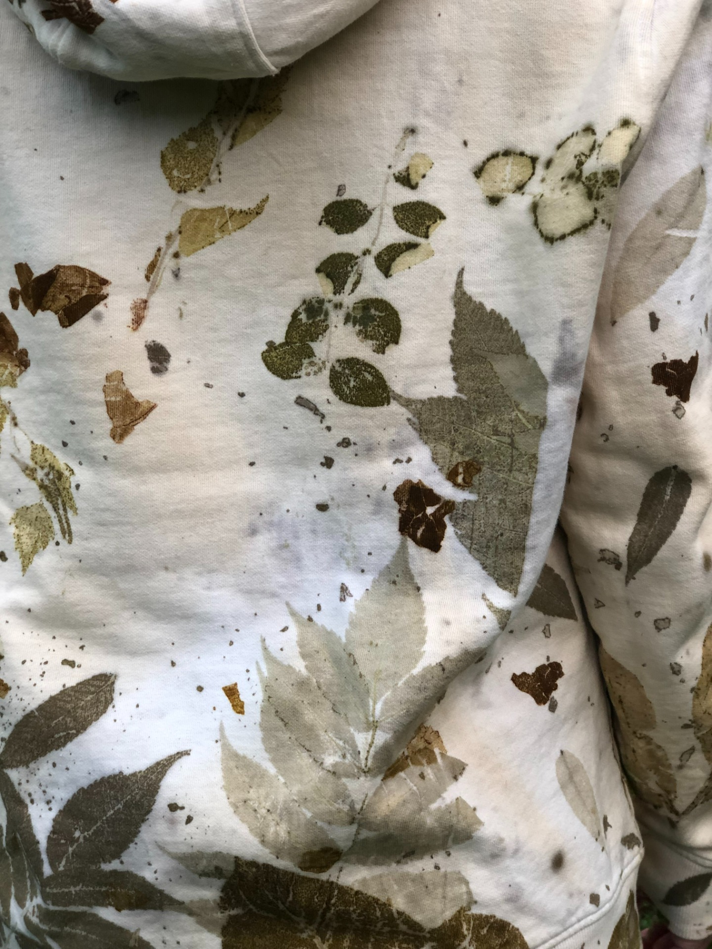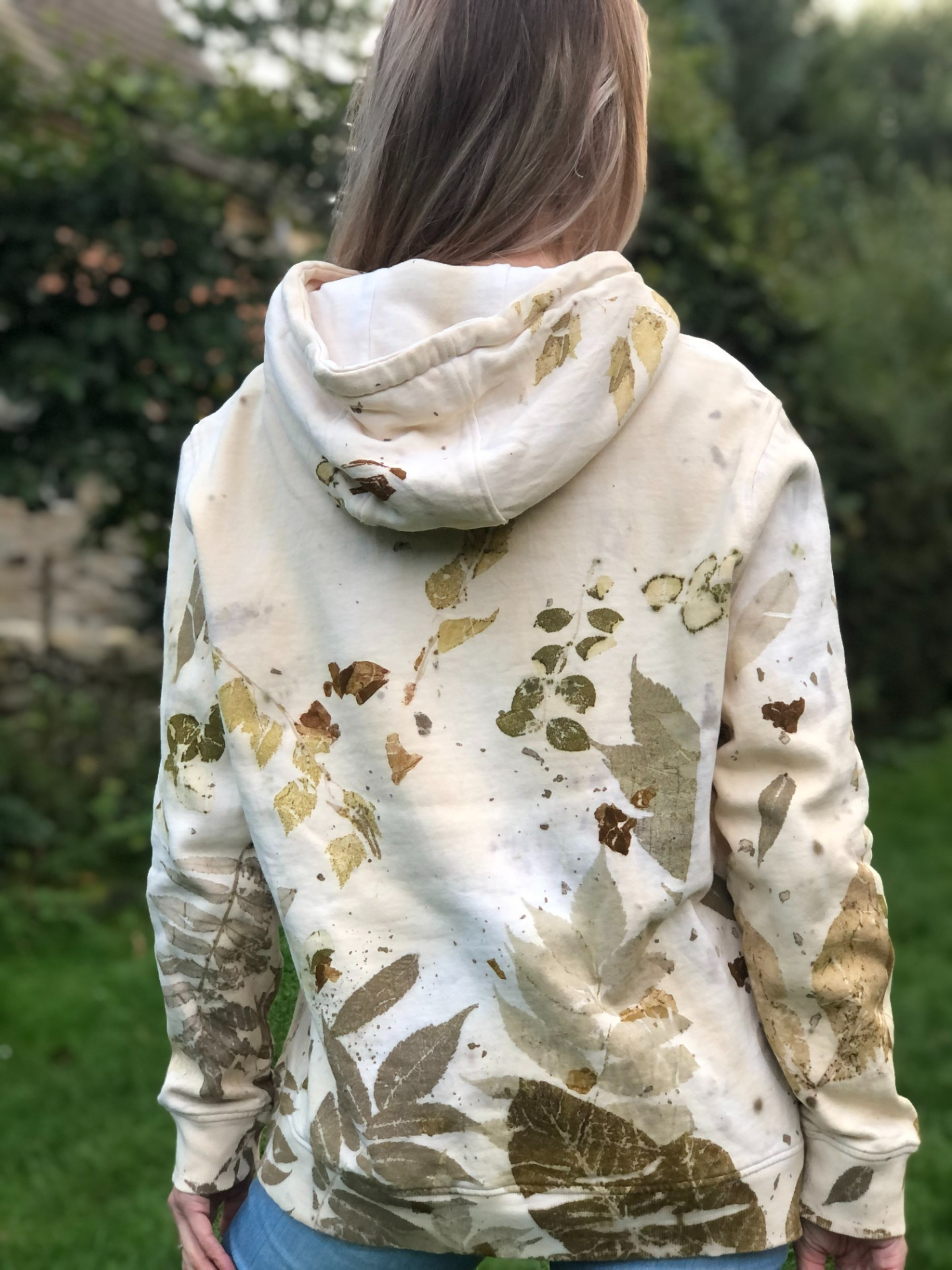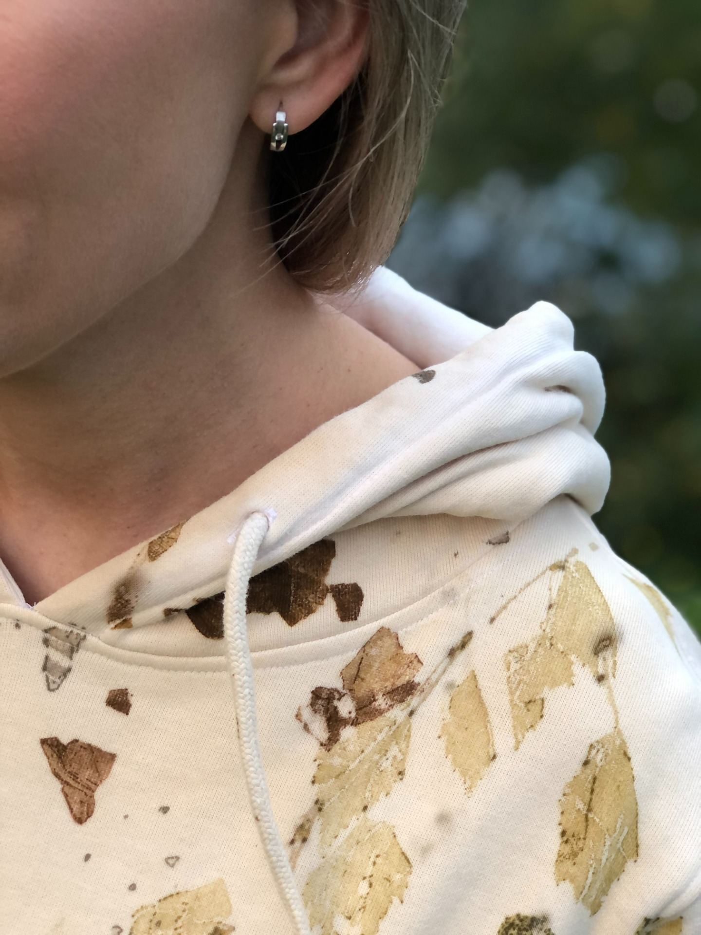 Mikinu sama nešiji, ale pečlivě vybírám kvalitní kousky, které splňují vysoké standardy. Poté je ručně potisknu technikou ecoprint, aby každý kus byl originál.