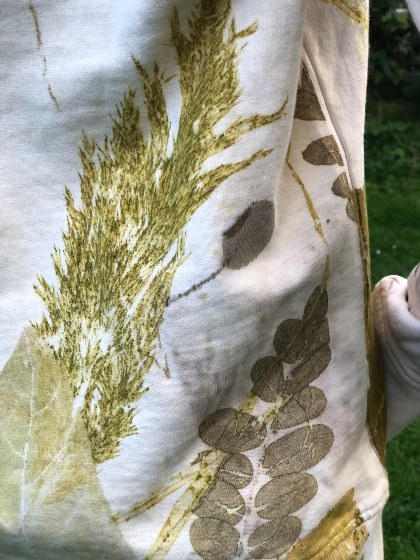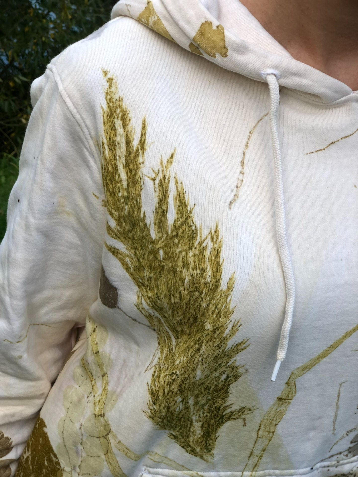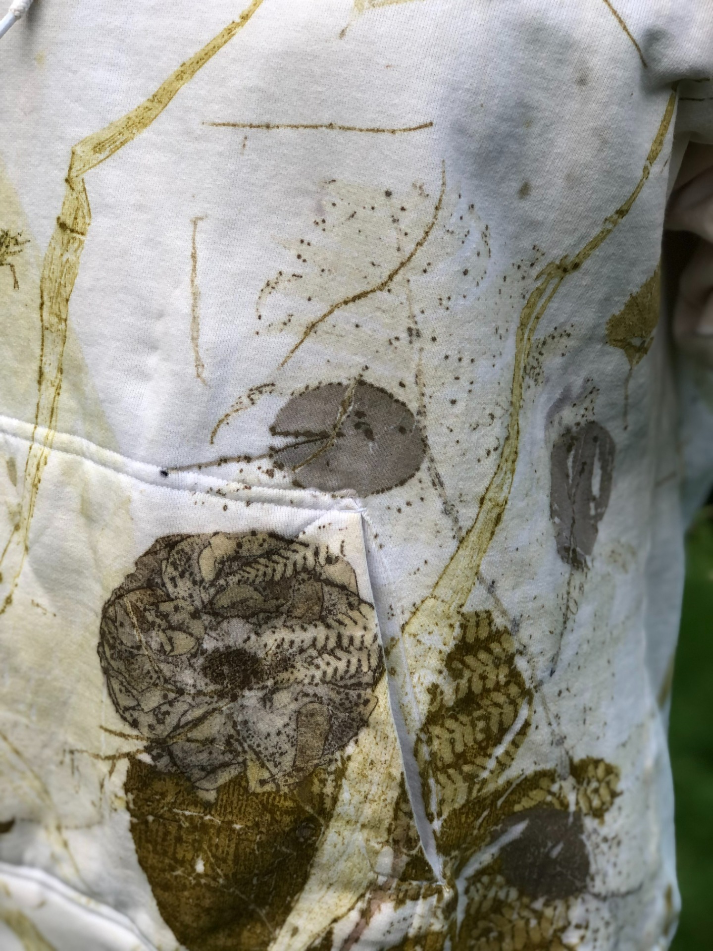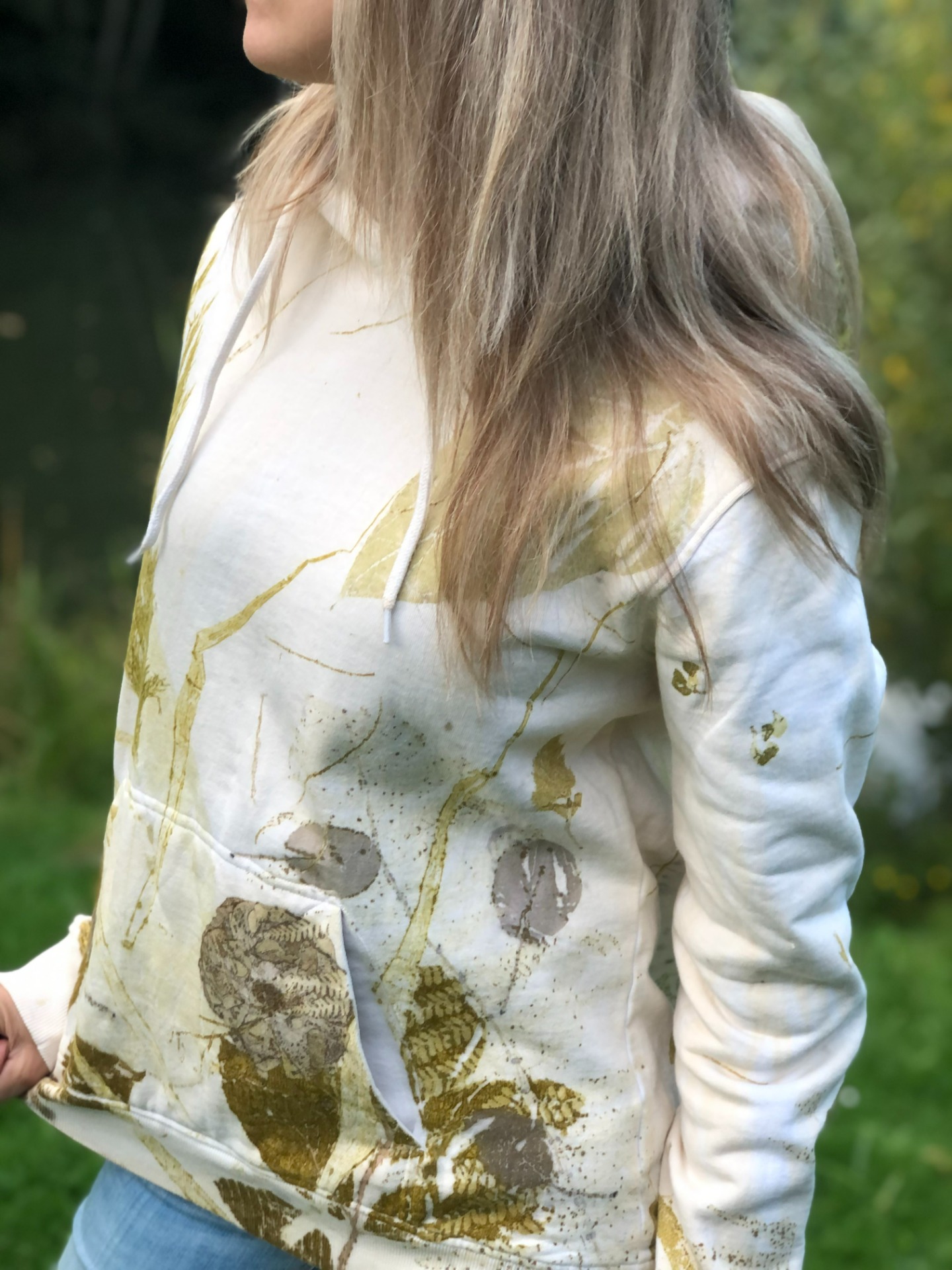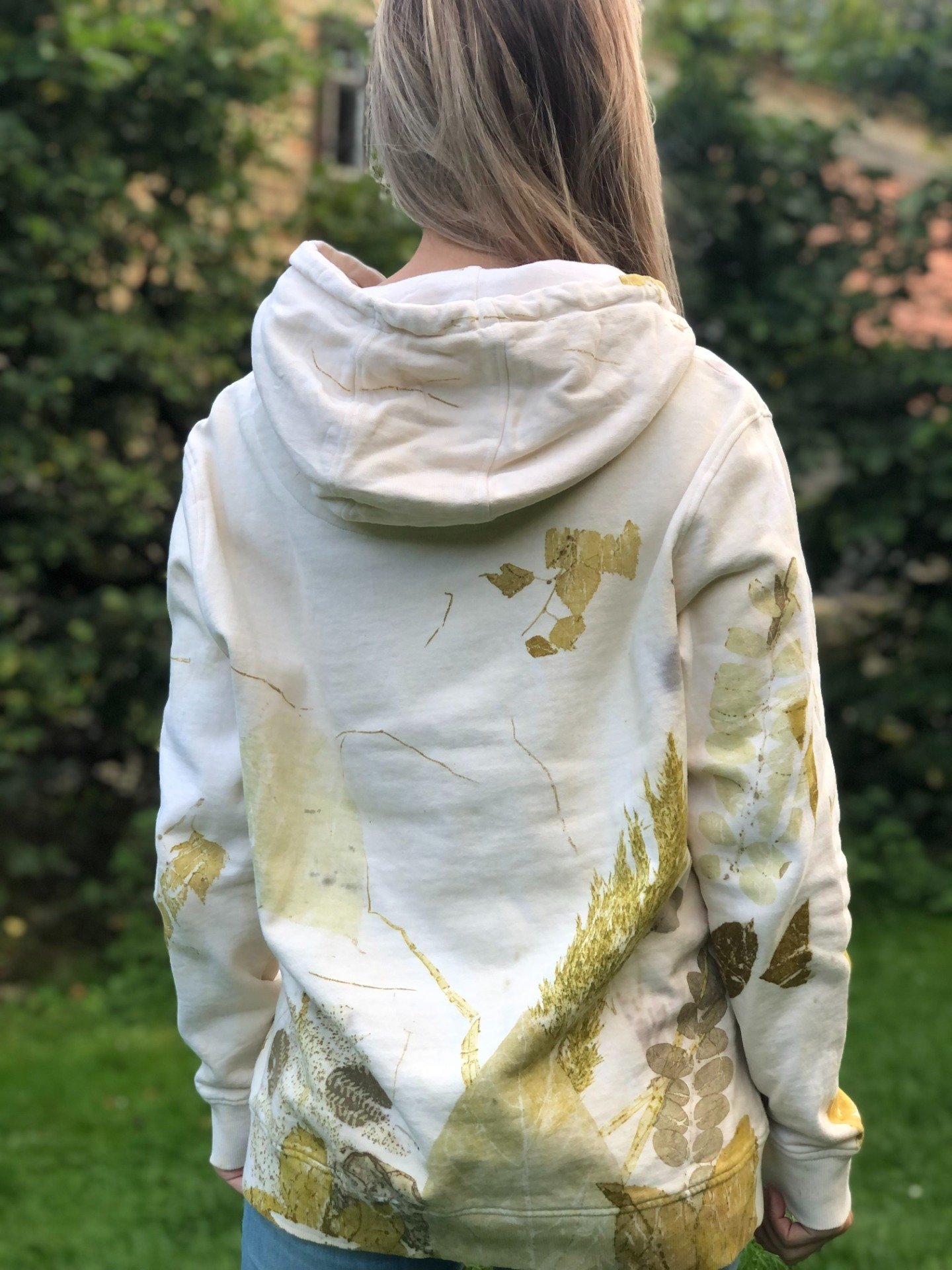 Mikinu sama nešiji, ale pečlivě vybírám kvalitní kousky, které splňují vysoké standardy. Poté je ručně potisknu technikou ecoprint, aby každý kus byl originál.